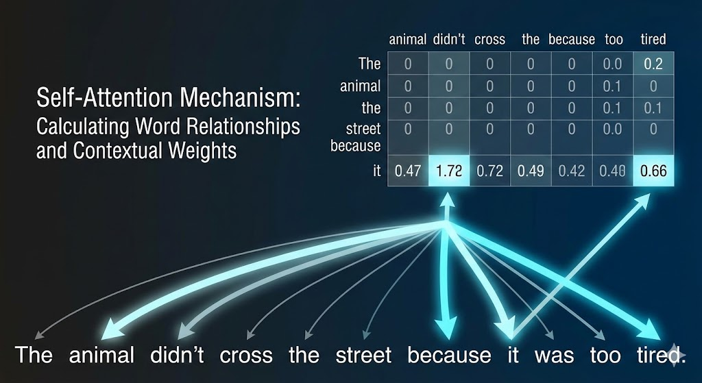 - 자가 주의(Self-Attention) - 문장의 각 단어가 다른 단어들과의 관계를 고려하여 가중치를 부여하는 방식으로, 문맥을 더 깊이 이해할 수 있도록 하는 핵심 메커니즘.